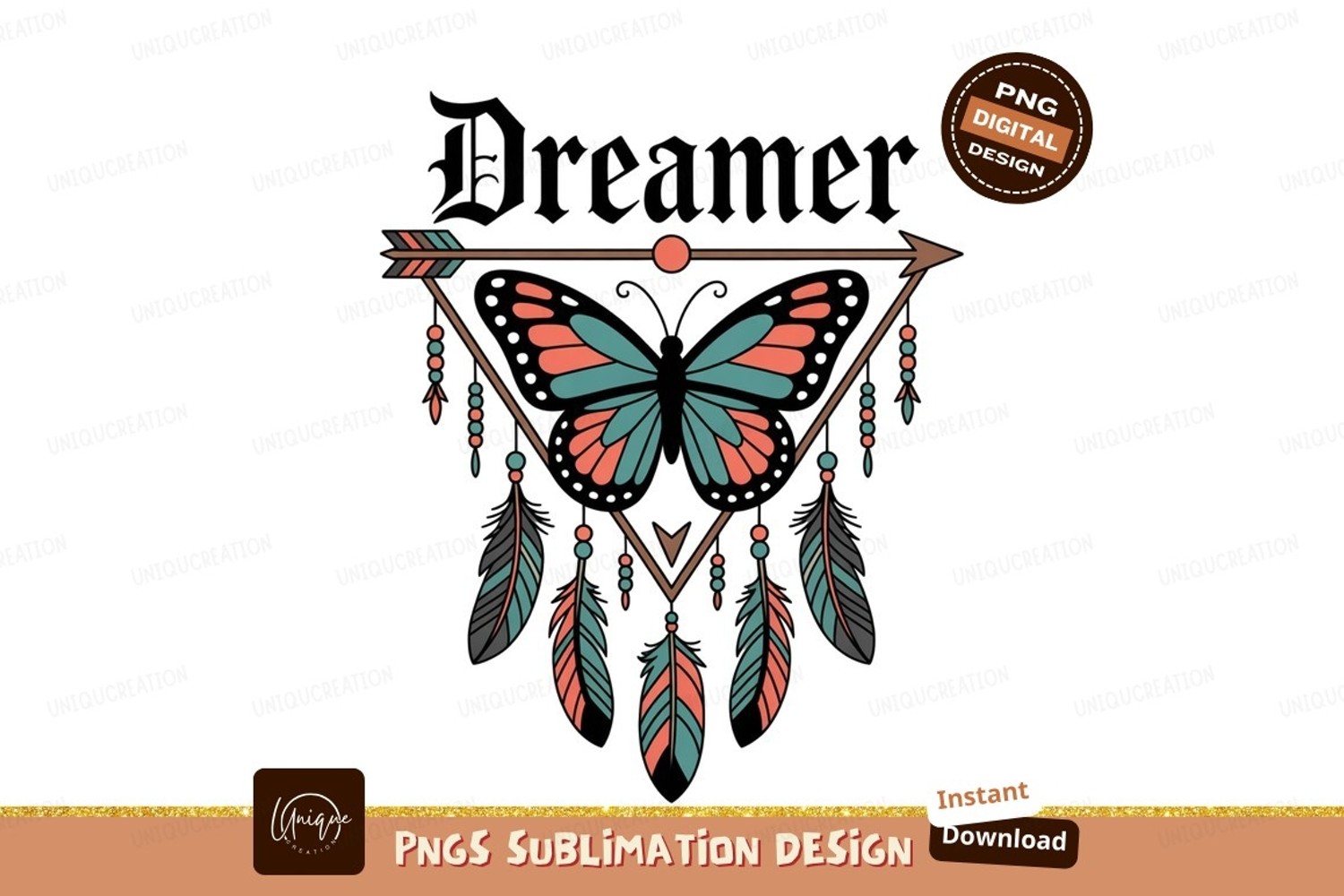 Butterfly dreamcatcher arrow tribal art feathers example image 1