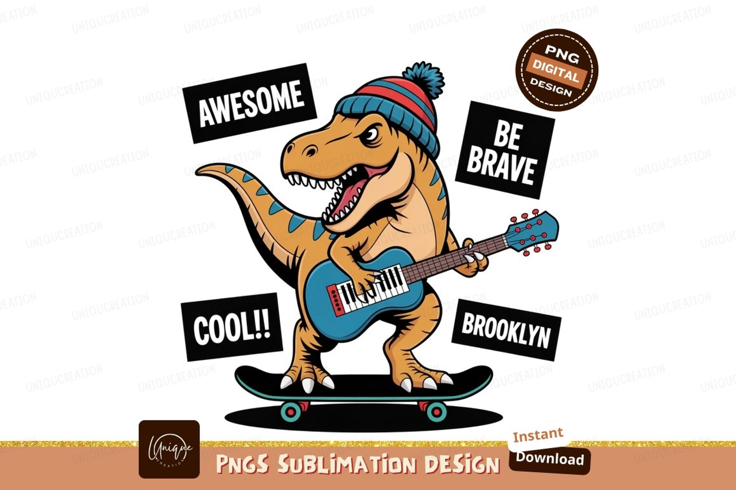 Similar Design Products to Orange dinosaur playing guitar on skateboard music