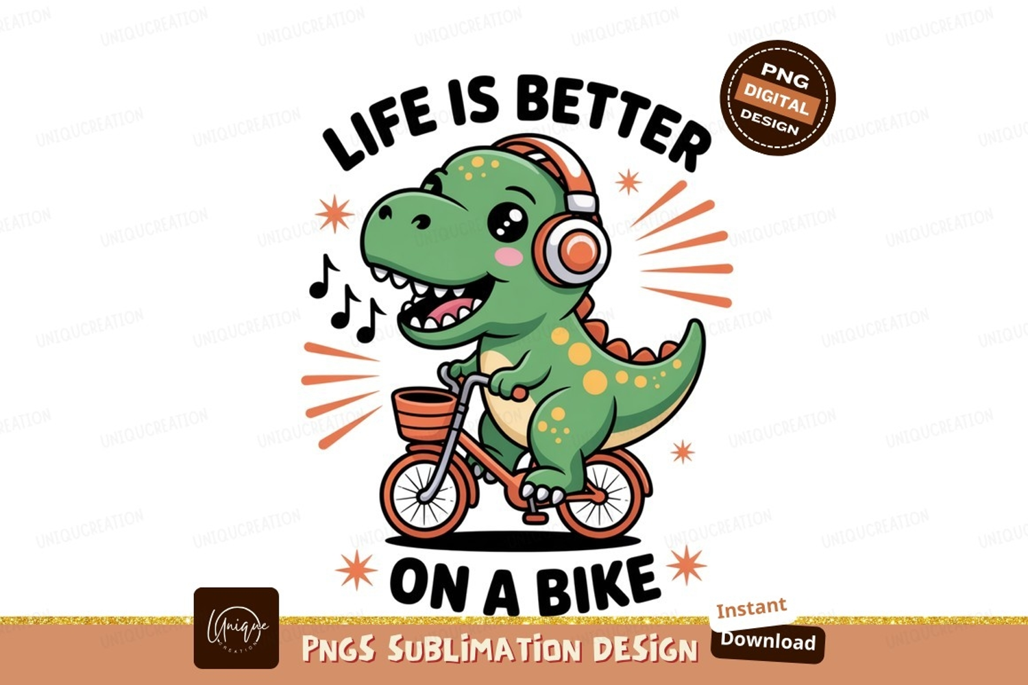 Similar Design Products to Green dinosaur riding bicycle with headphones orange