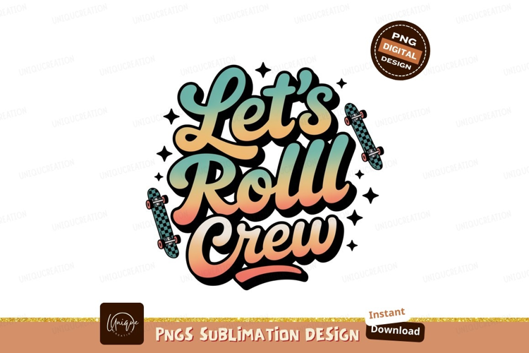 Lets Roll Crew Retro Skateboard Typography image example image 1