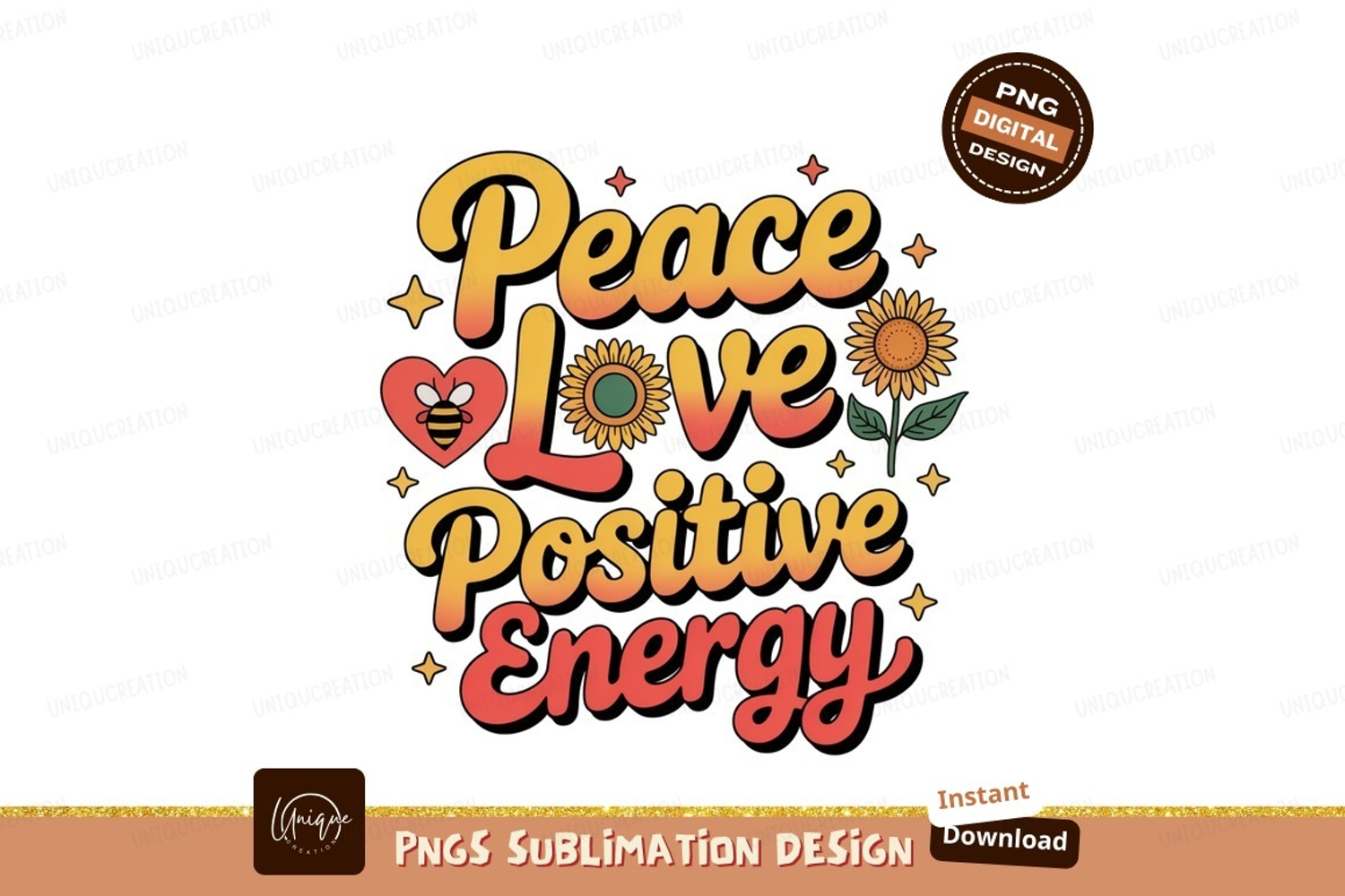 Peace Love Positive Energy Sunflower Bee image example image 1