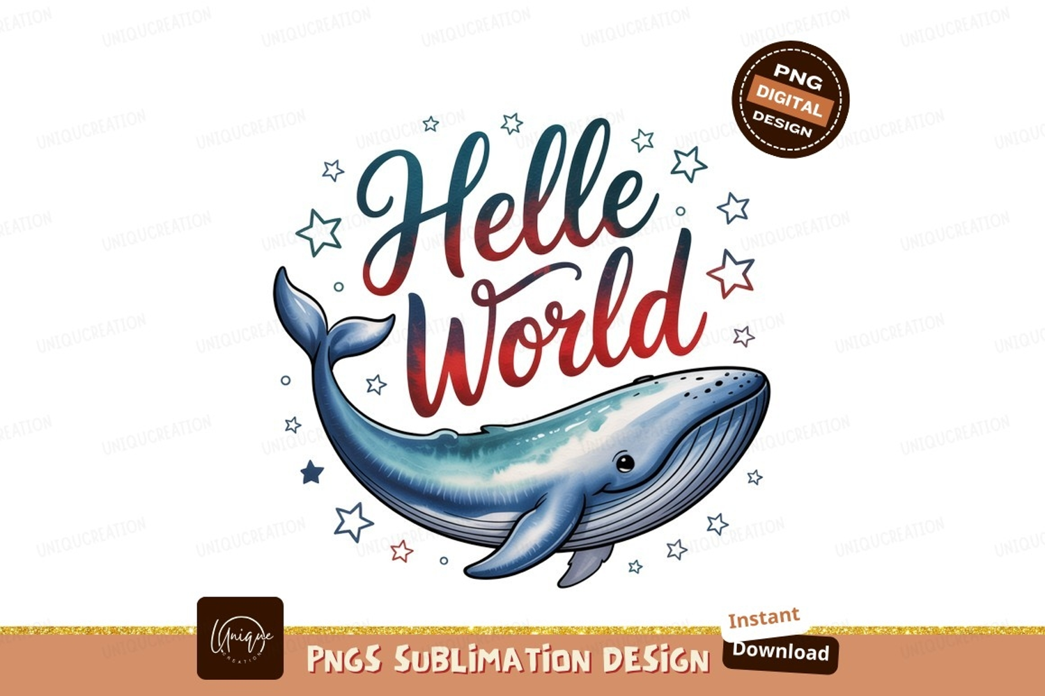 Text Animal Hello Ocean World Blue Marine Whale Stars Dragonfly