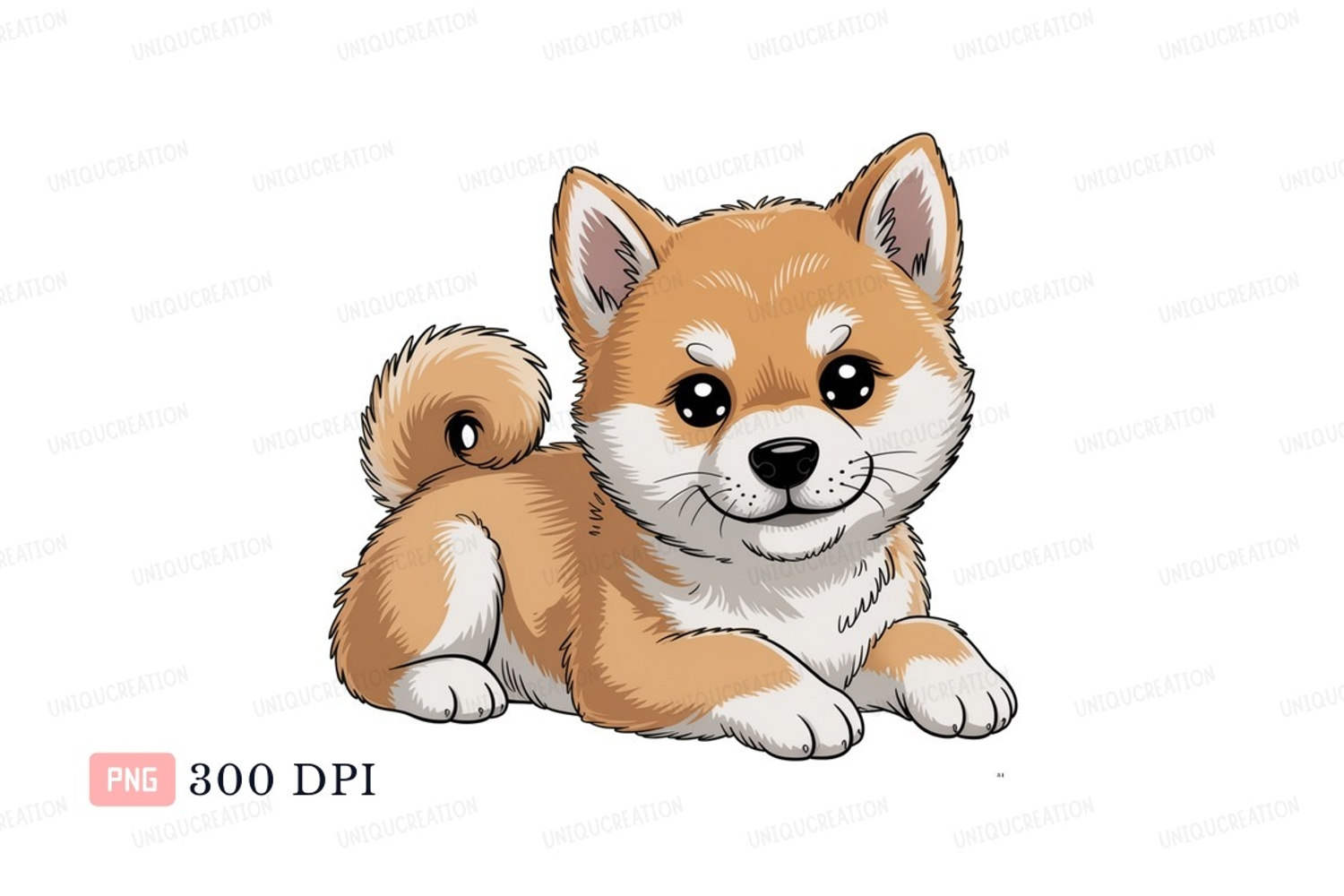Illustration Cartoon Cute Brown White Puppy Dog Kawaii Inu Shiba