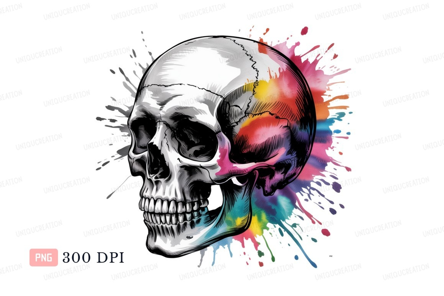 Colorful skull splash art bones paint example image 1