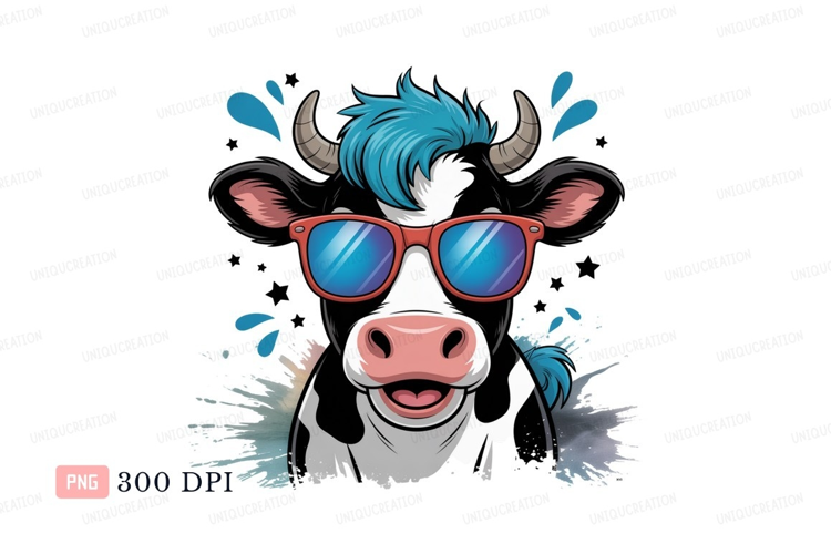 Cool cow wearing sunglasses blue black example image 1