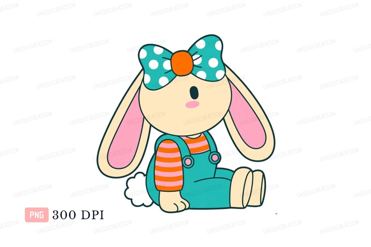 Cartoon bunny wearing overalls and bow character cute example image 1