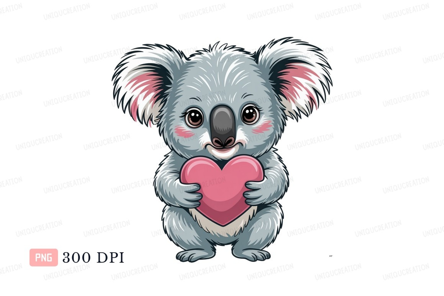 Illustration Cartoon Animal Love Cute Pink Graphic Heart Clipart Koala