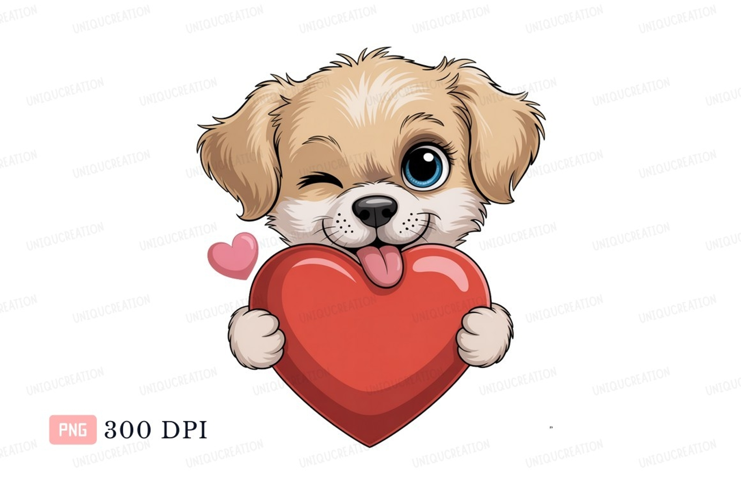 Similar Design Products to Fluffy puppy winking holding red heart pink