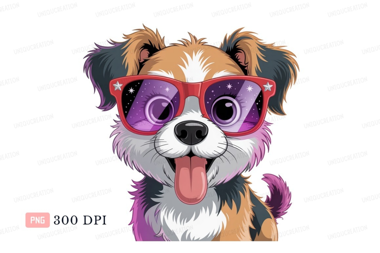 Illustration Cartoon Animal Purple Red Pet Puppy Dog Sunglasses Stars