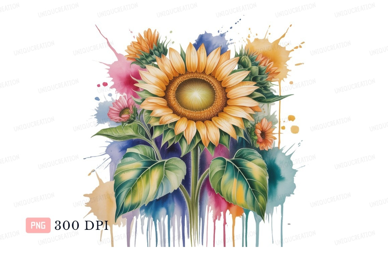 Vibrant sunflower bouquet watercolor splashes yellow example image 1