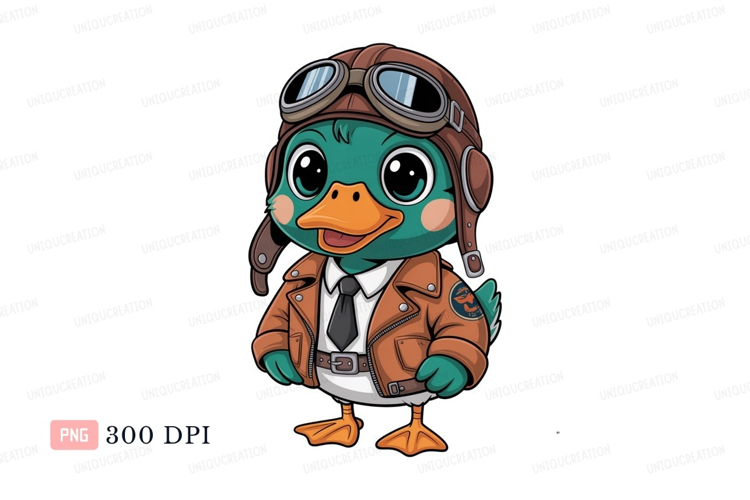 Cute cartoon duck aviator wearing leather jacket green example image 1