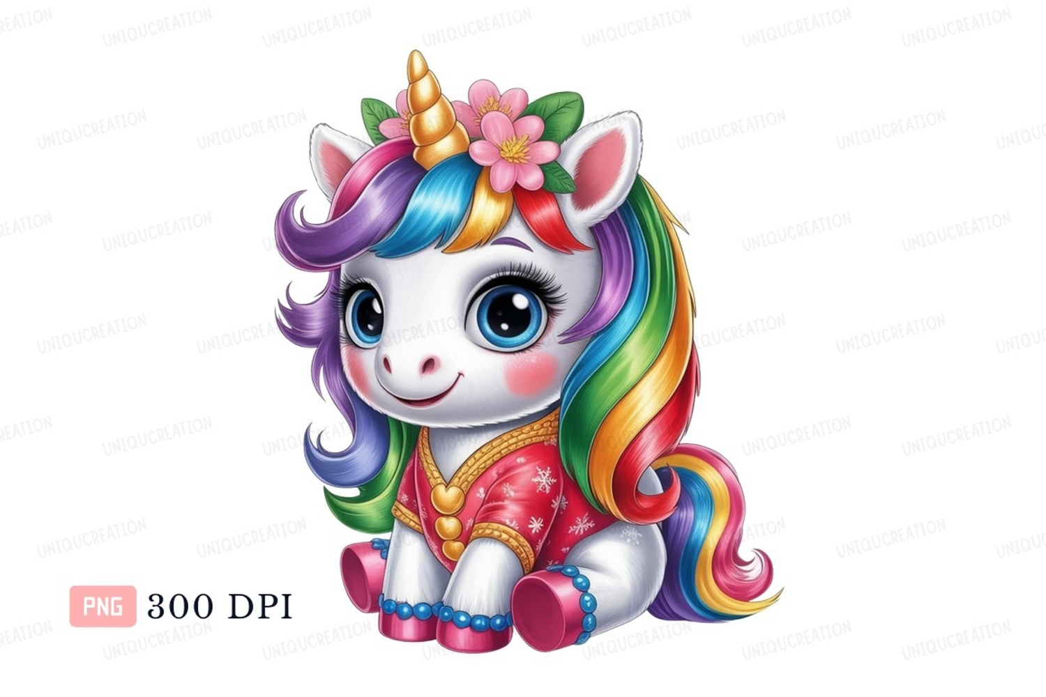 Adorable unicorn with rainbow mane horn flowers example image 1