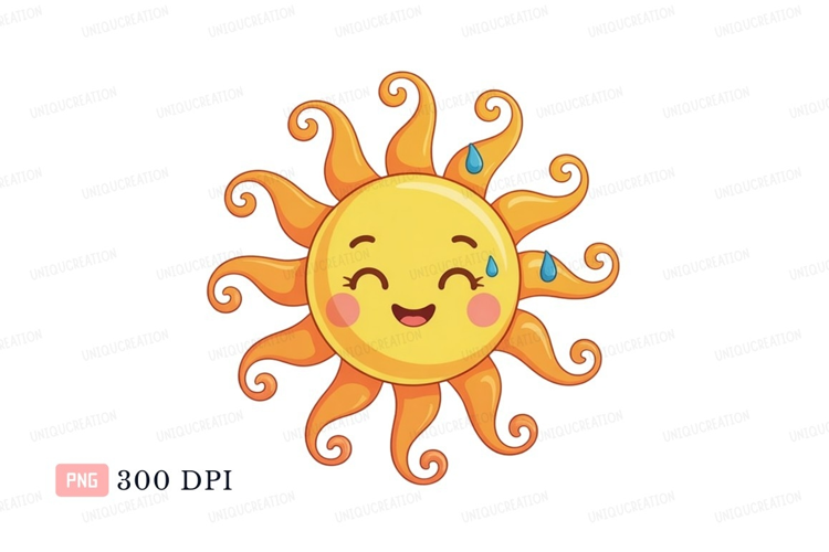 Smiling sun with sweat drops happy example image 1