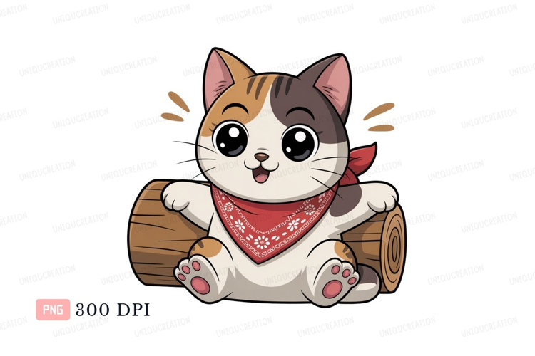 Cartoon Animal Cute Clipart Bandana Cat Red Pet Log Calico