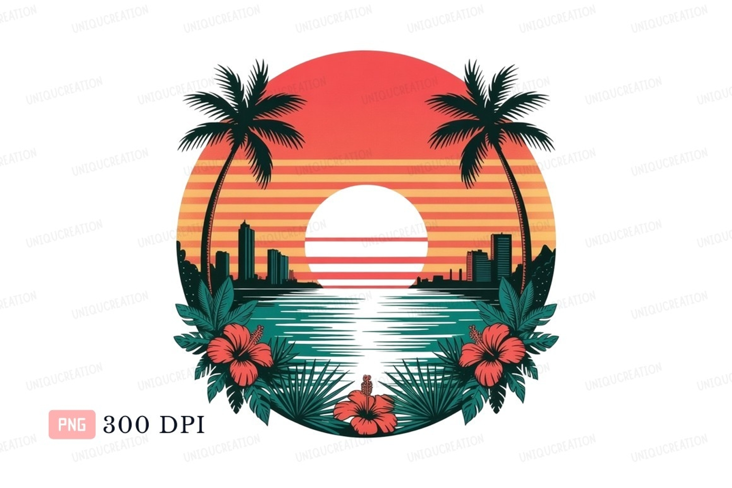 Similar Design Products to Tropical sunset city skyline ocean view image