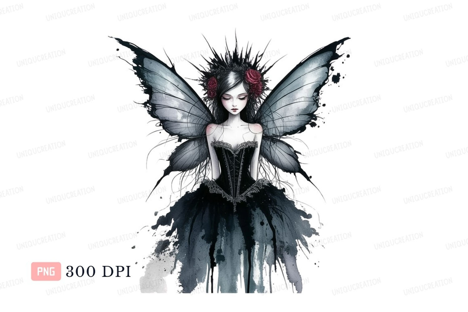Fantasy Gothic Black Dark Fairy Dress Roses Creature Wings Ethereal