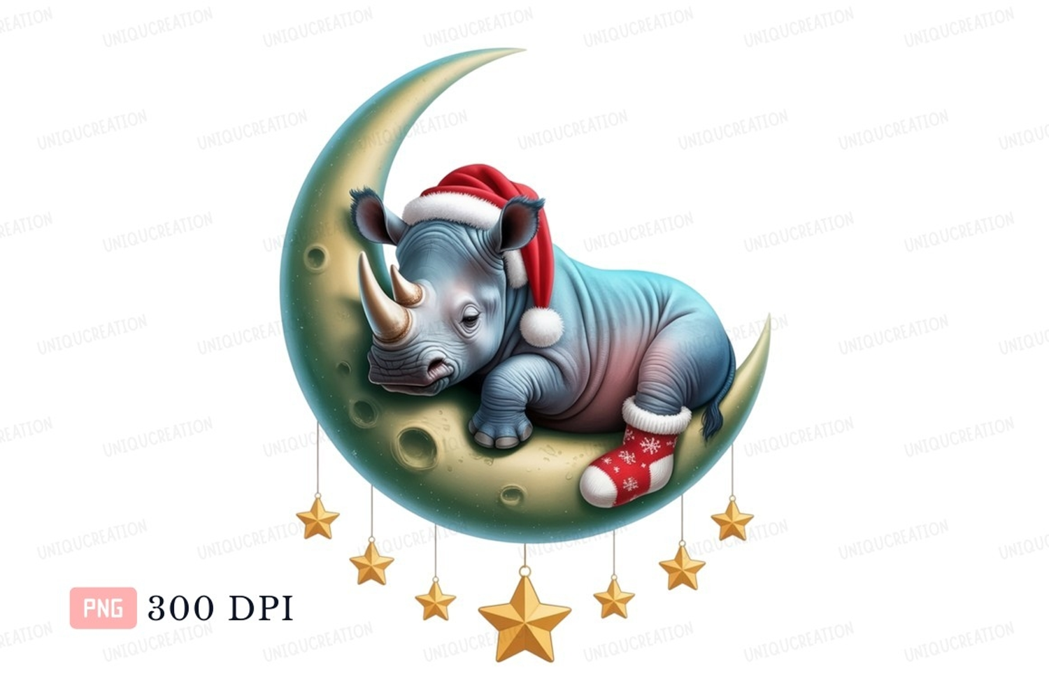 Similar Design Products to Baby rhino sleeping on crescent moon image
