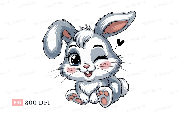 Cartoon Animal Playful Cute Pink Happy Blue Bunny White Grey