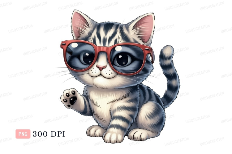 Similar Design Products to Cute tabby kitten wearing red glasses waving image