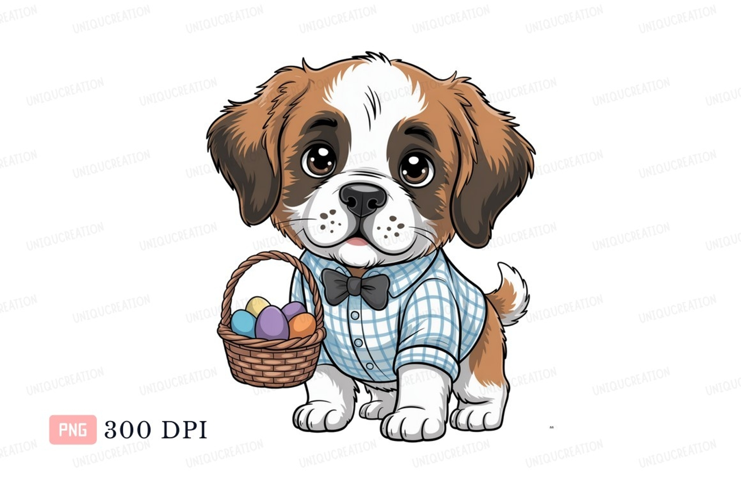 Similar Design Products to Cute puppy wearing shirt holding easter basket image