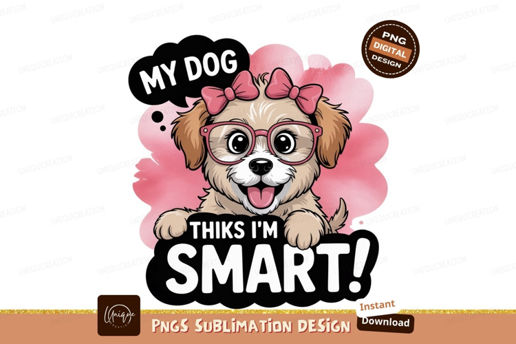 Cartoon Cute Pink Glasses Smart Puppy Dog Bows Humor Frappe