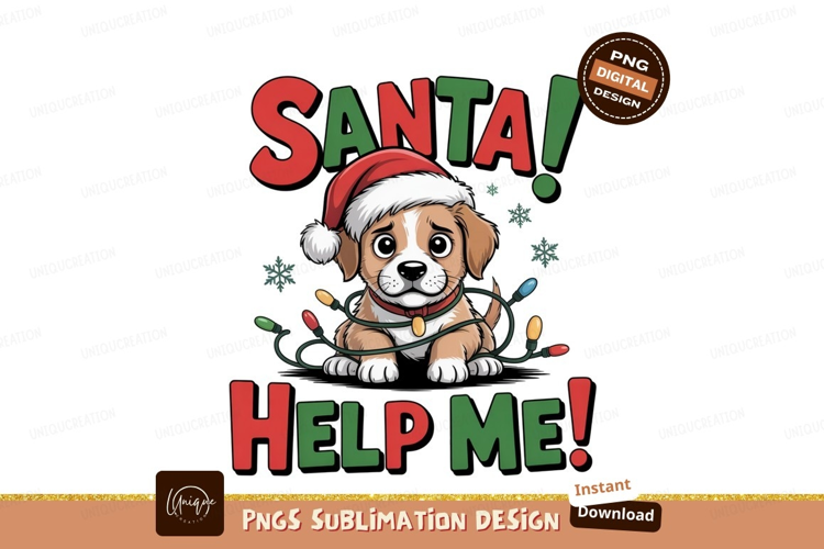 Similar Design Products to Sad puppy wearing Santa hat tangled in Christmas lights