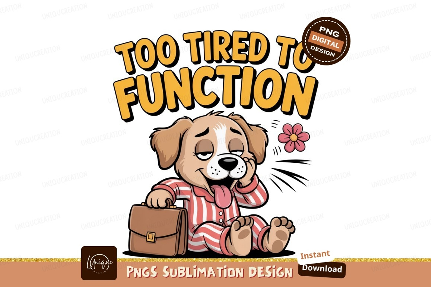 Similar Design Products to Tired dog in pajamas with briefcase flower