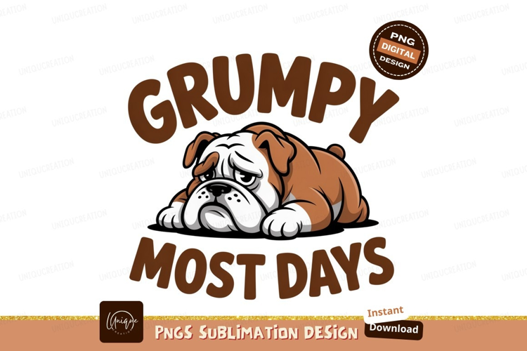 Similar Design Products to Sad bulldog illustration with text grumpy brown