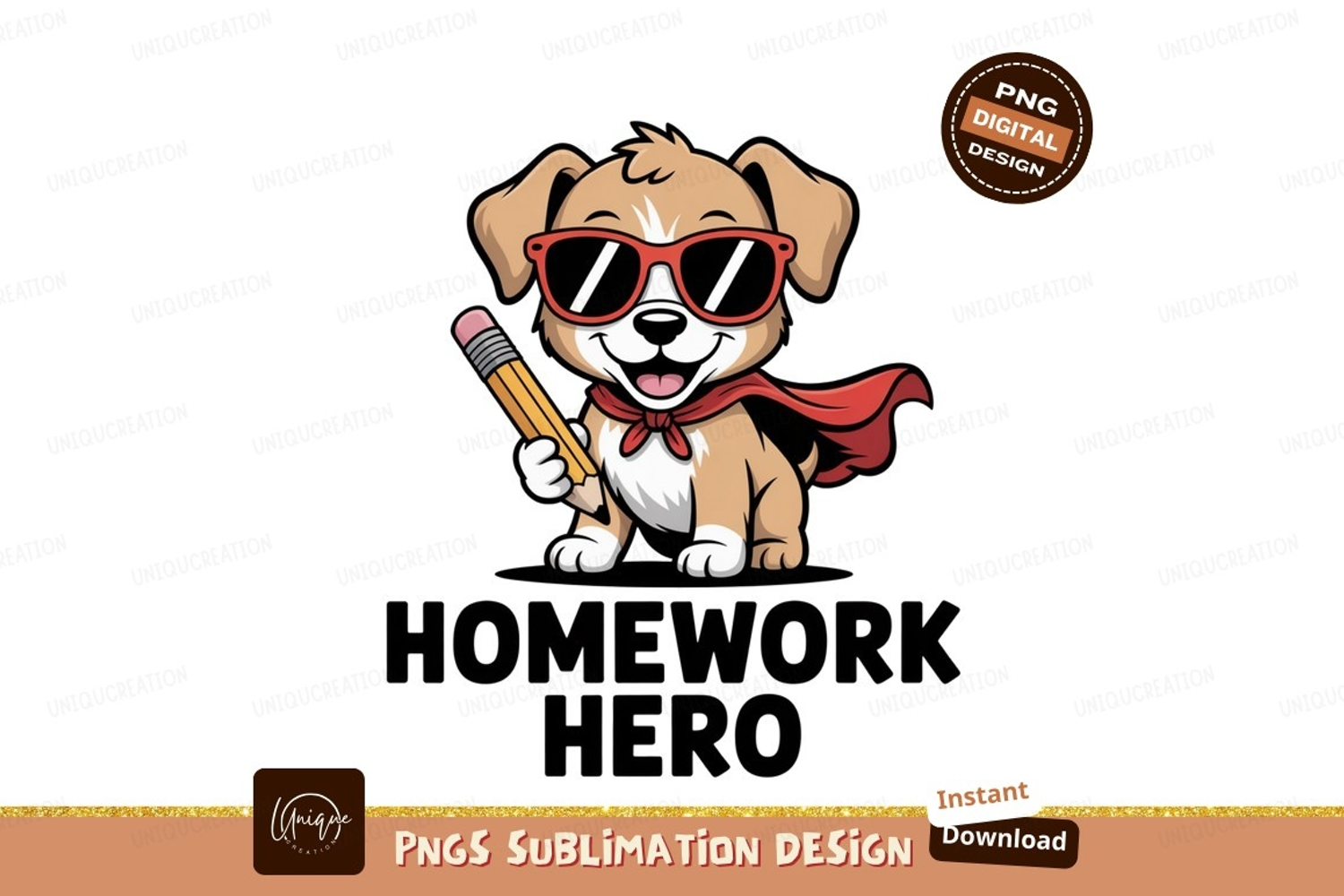 Cool puppy wearing sunglasses and cape holding pencil example image 1