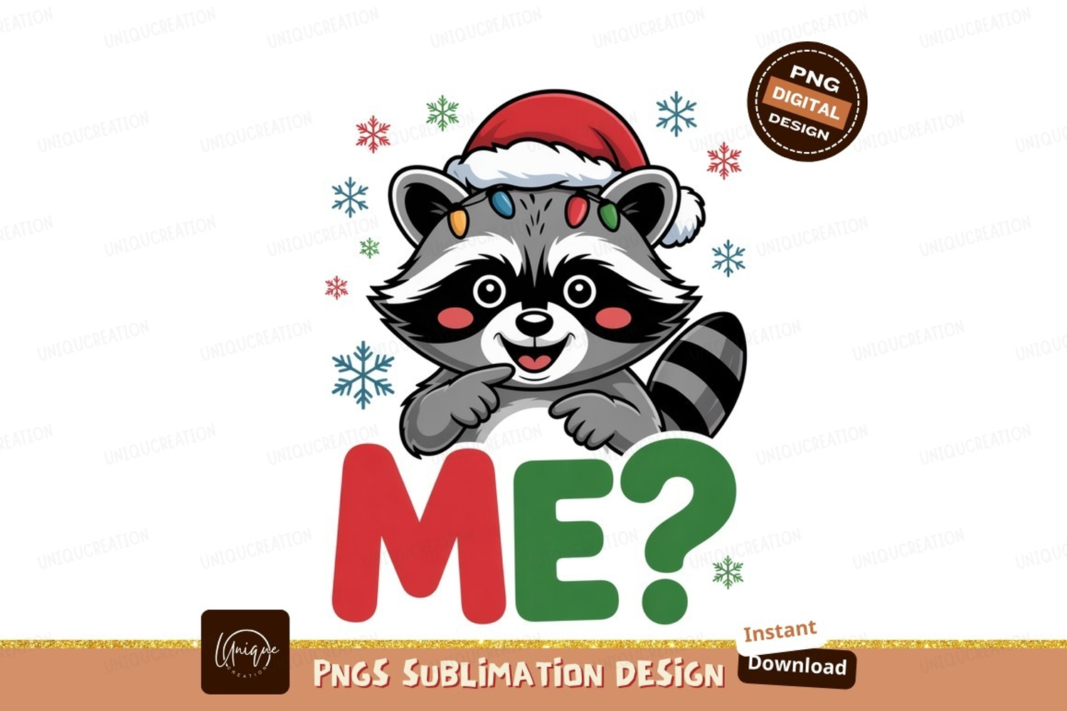 Raccoon Christmas Lights Festive Fun snowflakes example image 1