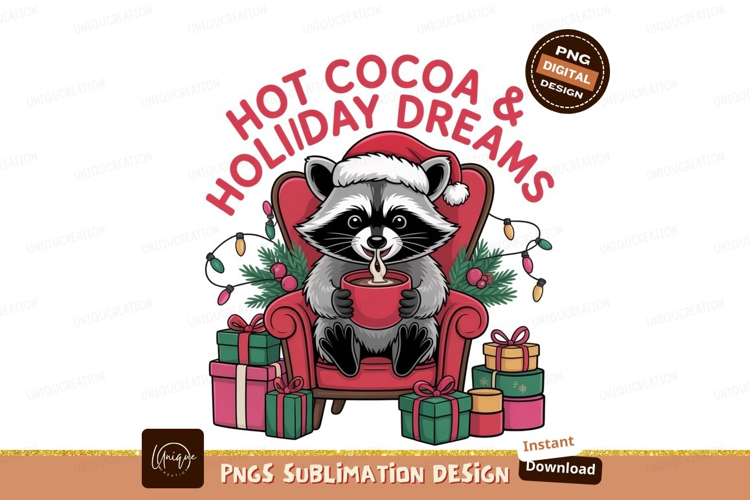 Raccoon cozy holiday drink christmas cocoa example image 1