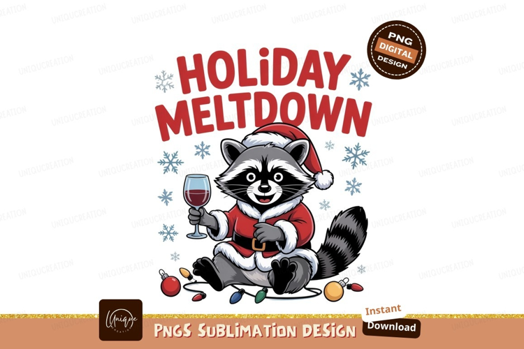 Christmas Hot Santa Hat Chair Chocolate Mug Raccoon Yawning Frappe