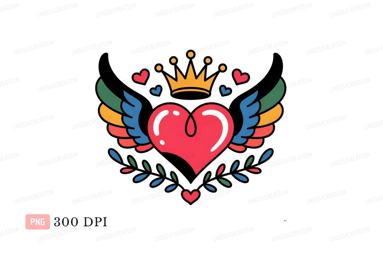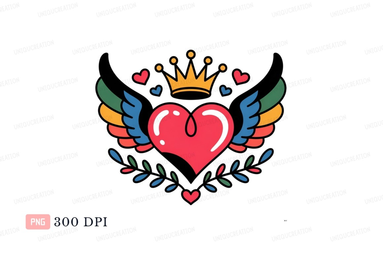 Red heart with wings and crown yellow