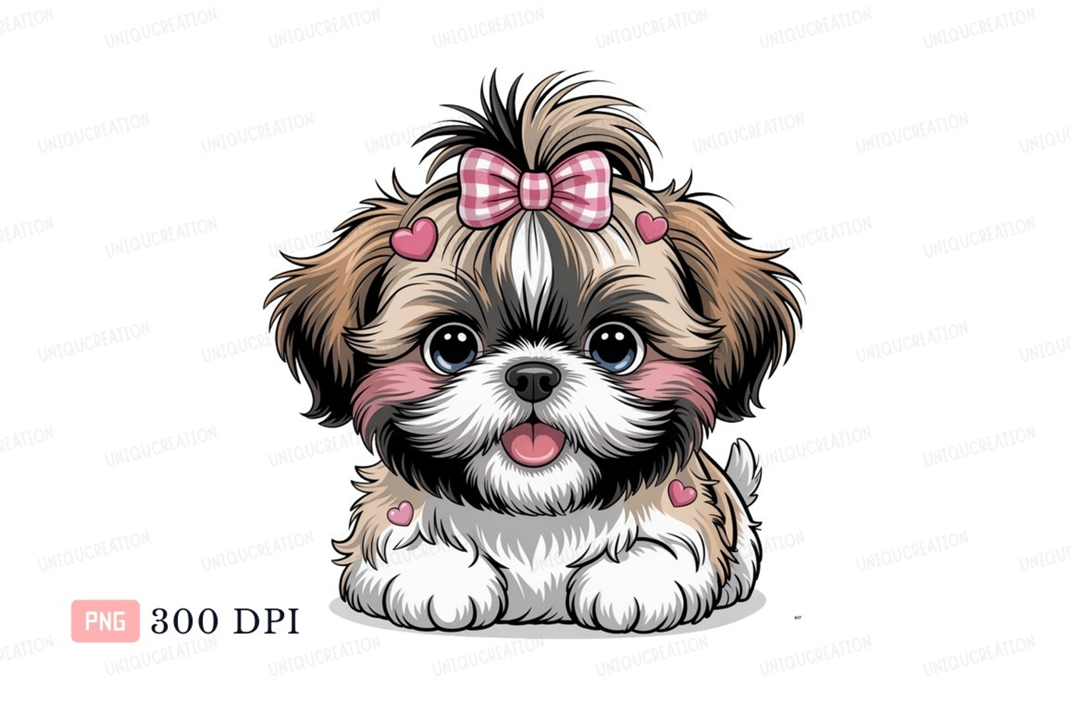 Illustration Cartoon Cute Pink Hearts Clipart Bow Puppy Dog Fluffy