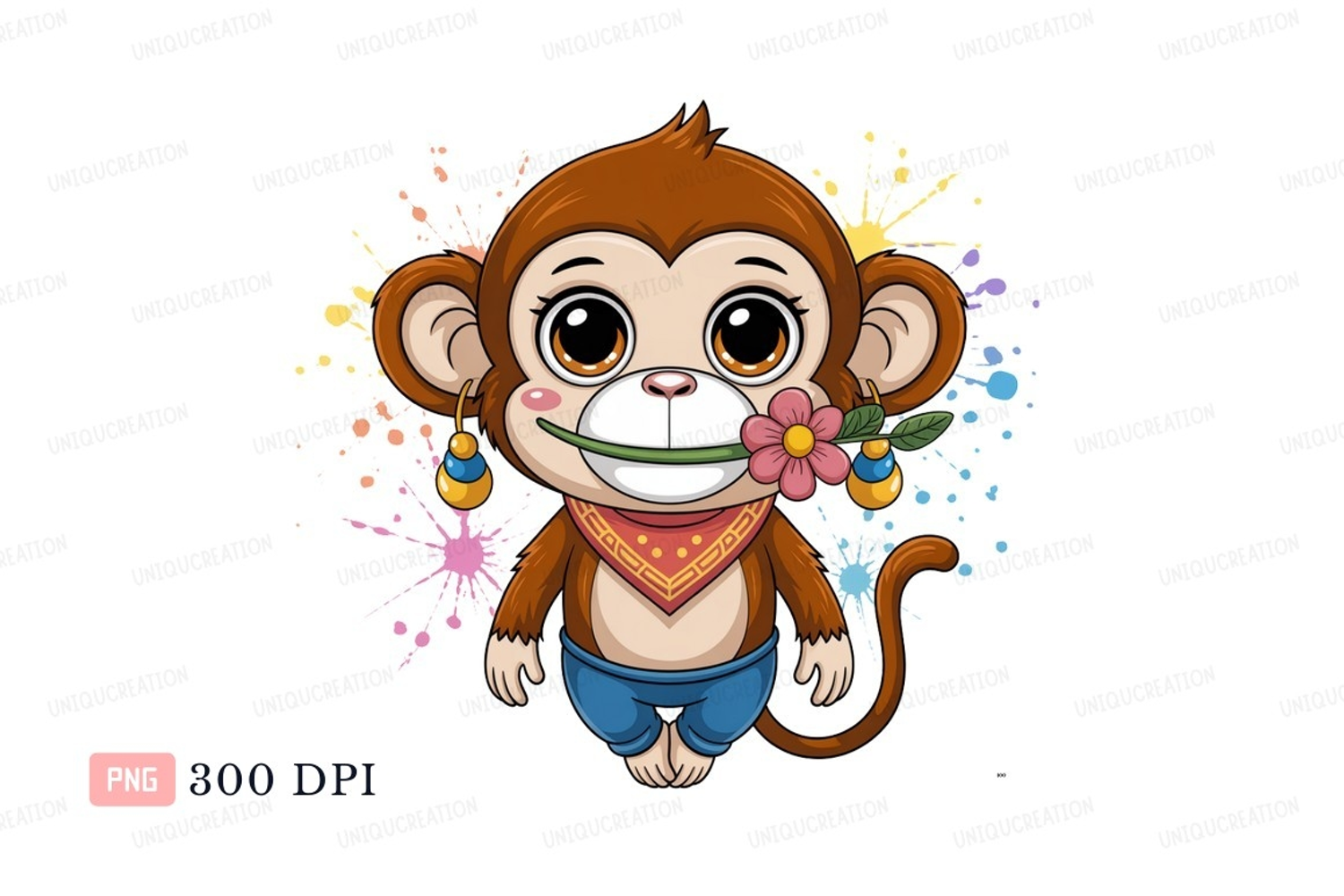 Similar Design Products to Cute monkey with flower and earrings animal cartoon