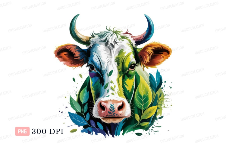Similar Design Products to Colorful cow surrounded by foliage green blue