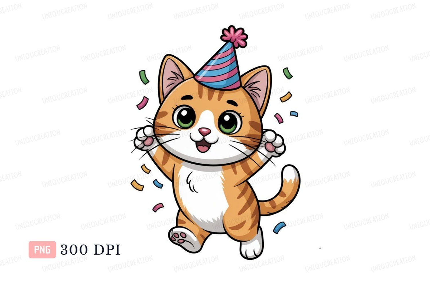 Cartoon Animal Party Cute Celebration Confetti Orange Cat Hat Tabby