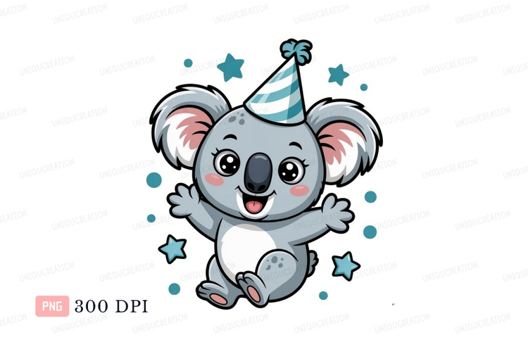 Animal Party Cute Celebration Clipart Png Koala Hat Stars