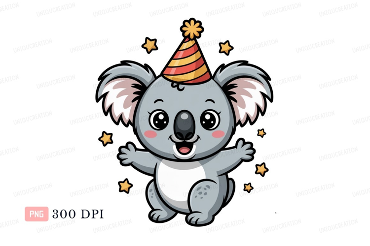 Cartoon Animal Party Cute Happy Celebration Png Koala Hat Stars