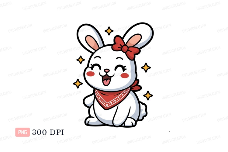 Cartoon Animal Black Cute Clipart Bandana Bow Png Bunny Red
