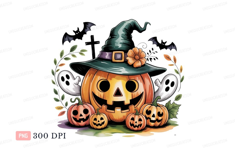 Jackolantern witch hat ghosts bats halloween pumpkin example image 1