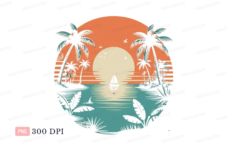 Similar Design Products to Tropical sunset sailing scene ocean sailboat