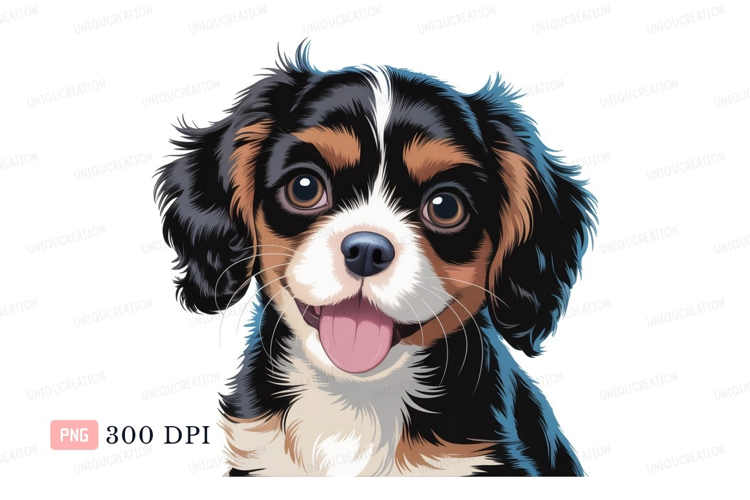 Happy tri color dog with tongue out canine animal example image 1