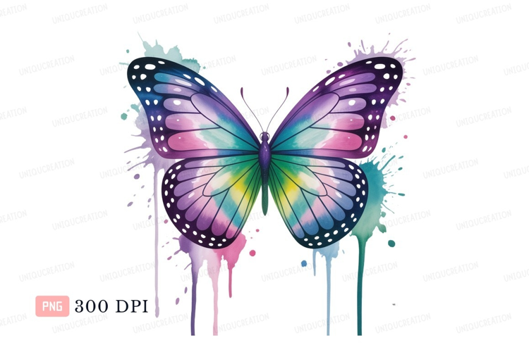 Watercolor Pink Green Colorful Splatter Purple Blue Yellow Butterfly Insect