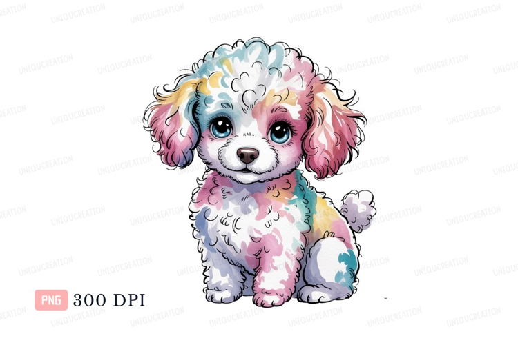 Fluffy poodle puppy colorful watercolor canine animal example image 1