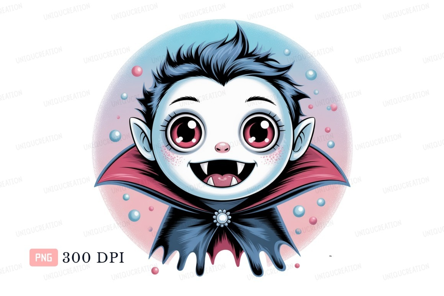 Child Character Cartoon Cute Pink Vampire Bubbles Spooky Fangs Cape