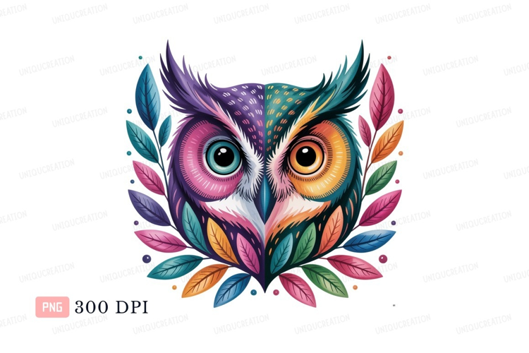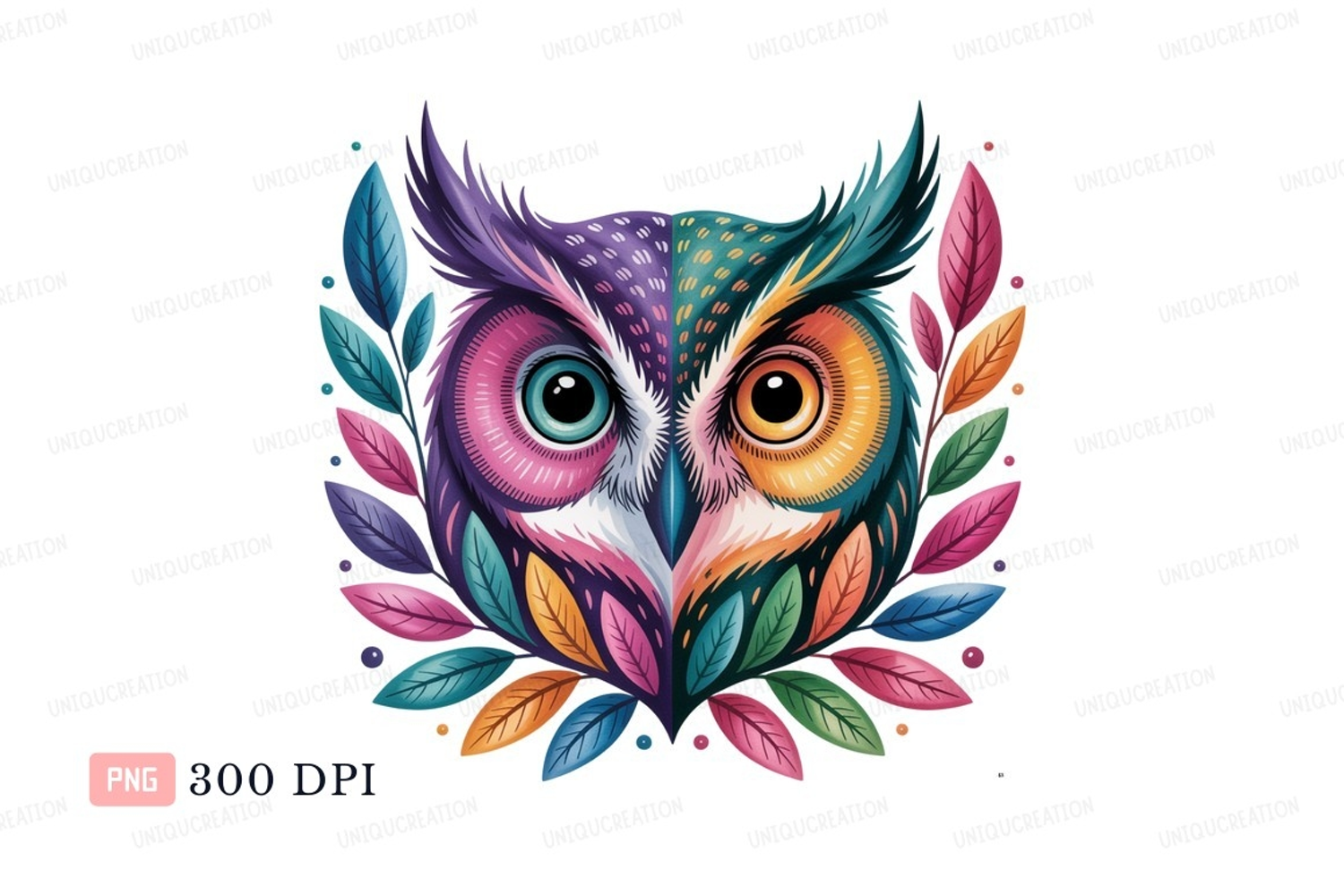 Pink Colorful Leaves Purple Blue Face Owl Feathers Eyes Beak