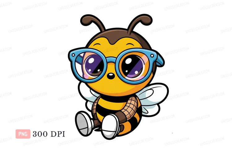 Cartoon Black Cute Brown Blue Yellow Insect White Glasses Bee