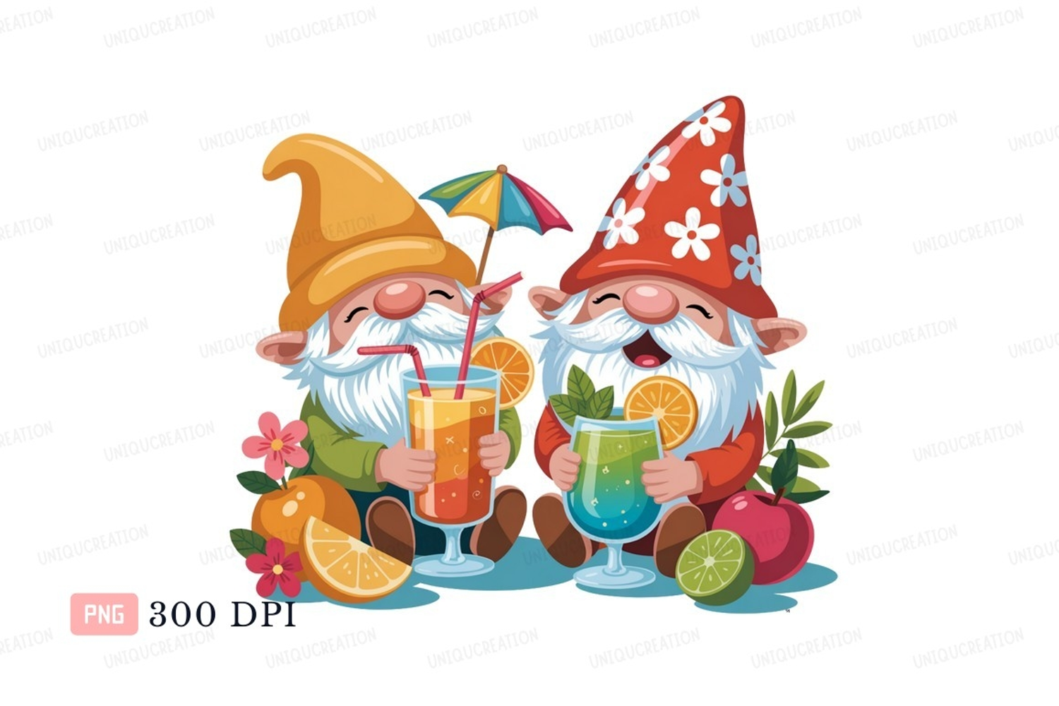 Gnomes enjoying refreshing summer drinks fruit cheerful example image 1