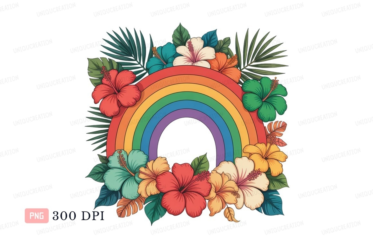 Summer Nature Celebration Colorful Floral Wreath Hibiscus Tropical Vibrant Rainbow